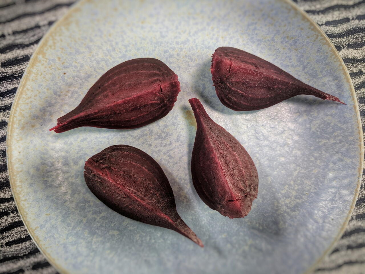 Remove from heat, then transfer the beets into a bowl of ice water. This just tends to make them easier to peel.