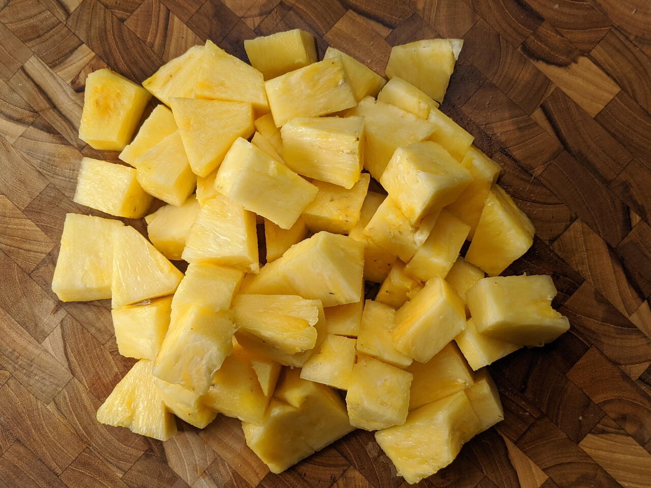 Choose a ripe pineapple and use a larger and sharp chef's knife.