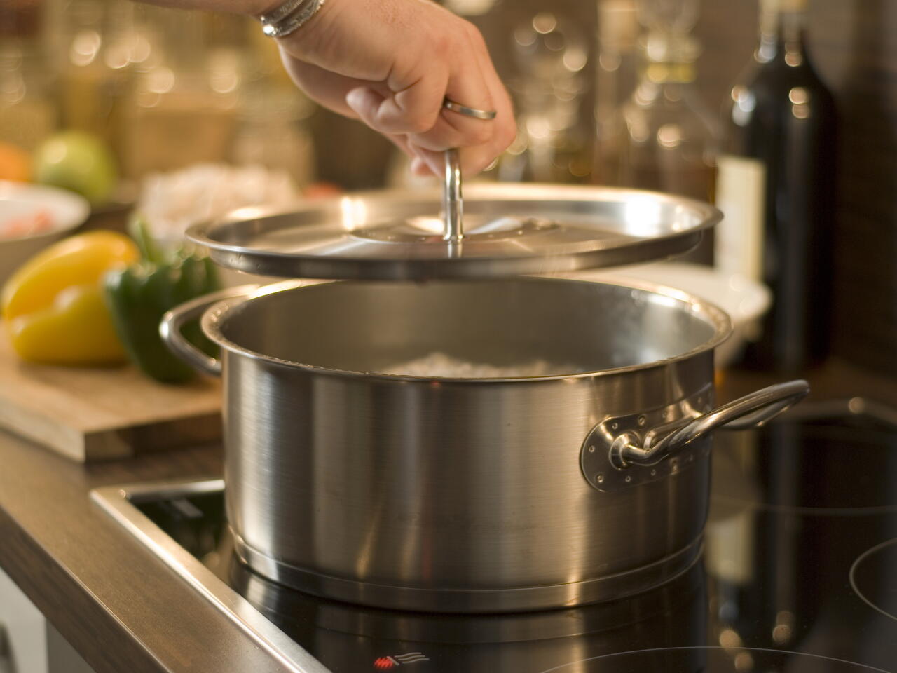 You can add a lid to the pot and set the stove to high as you bring the water up to a rolling boil. Once you add the pasta though, turn down the heat so the water is just at a simmer. If it's too hot, the water will splash around and even boil over.