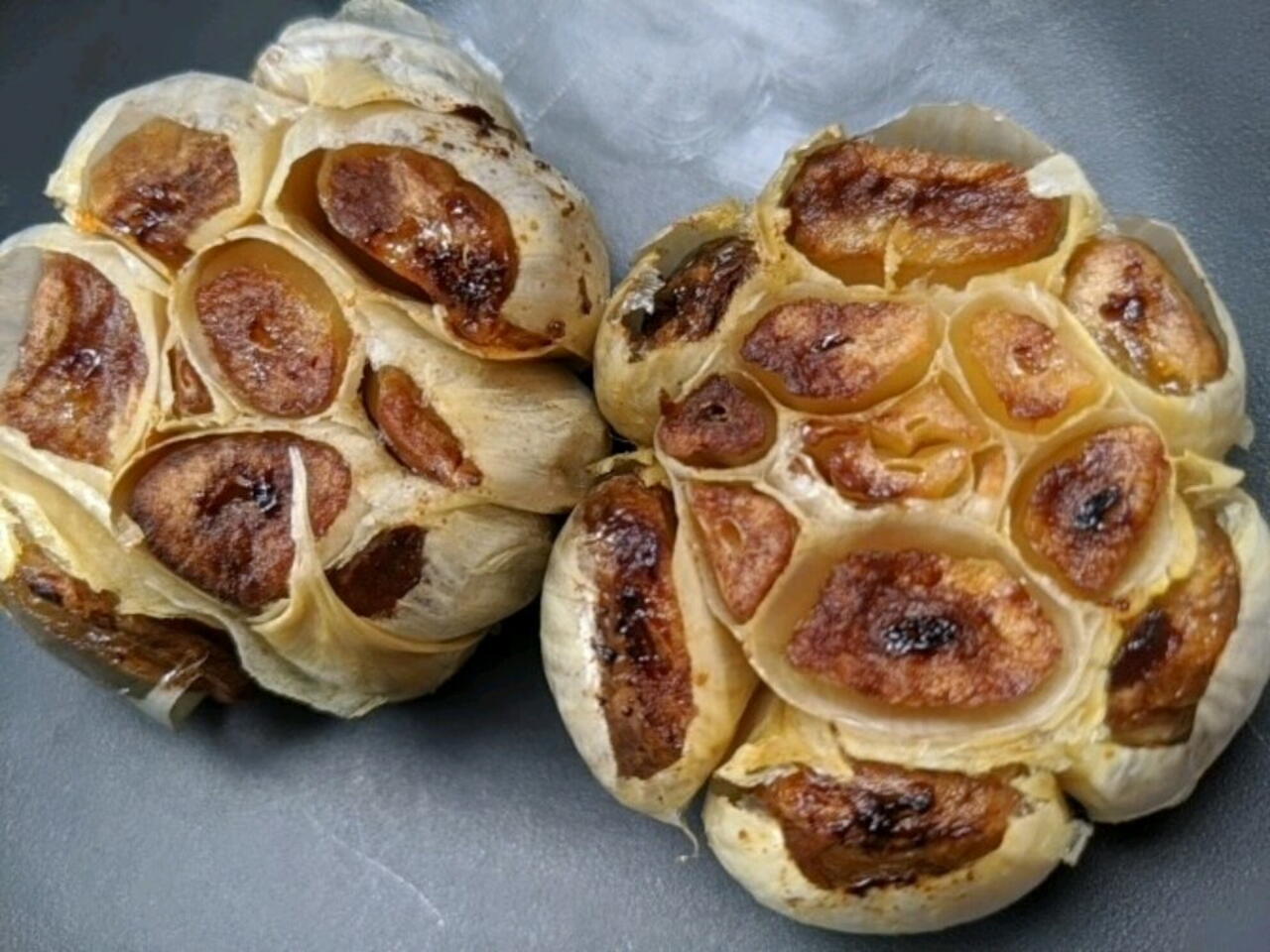 Place the foil packets on the pan and roast in the oven for about 40 minutes at 400 degrees until the garlic is soft and caramelized.