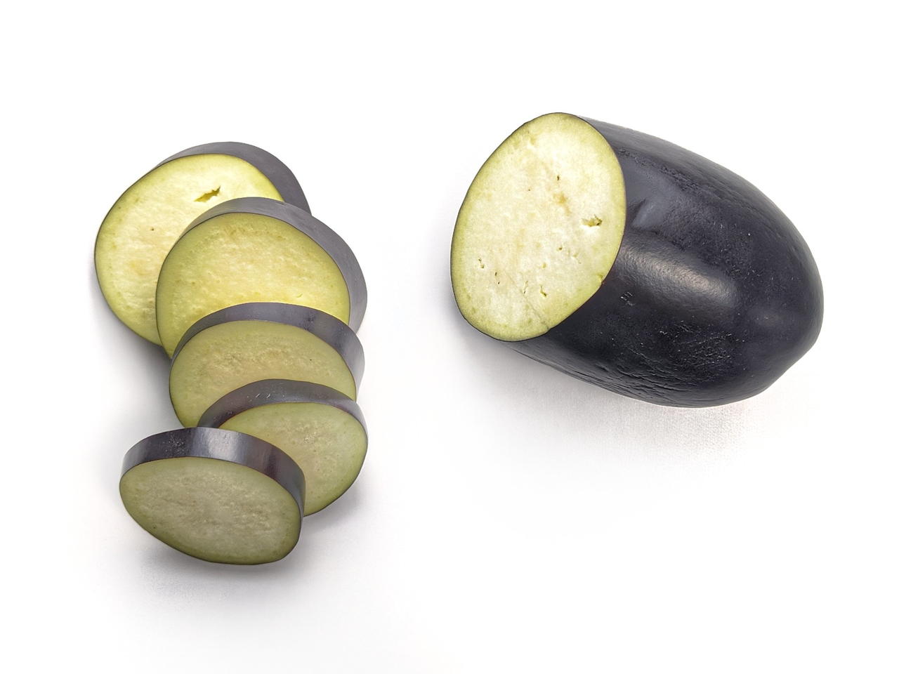 Slice off the stem tip and discard. The eggplant in the video is Italian eggplant, which is generally the largest common varietal. You will need to make some adjustments to the procedure here if you're using a smaller or narrower varietal.