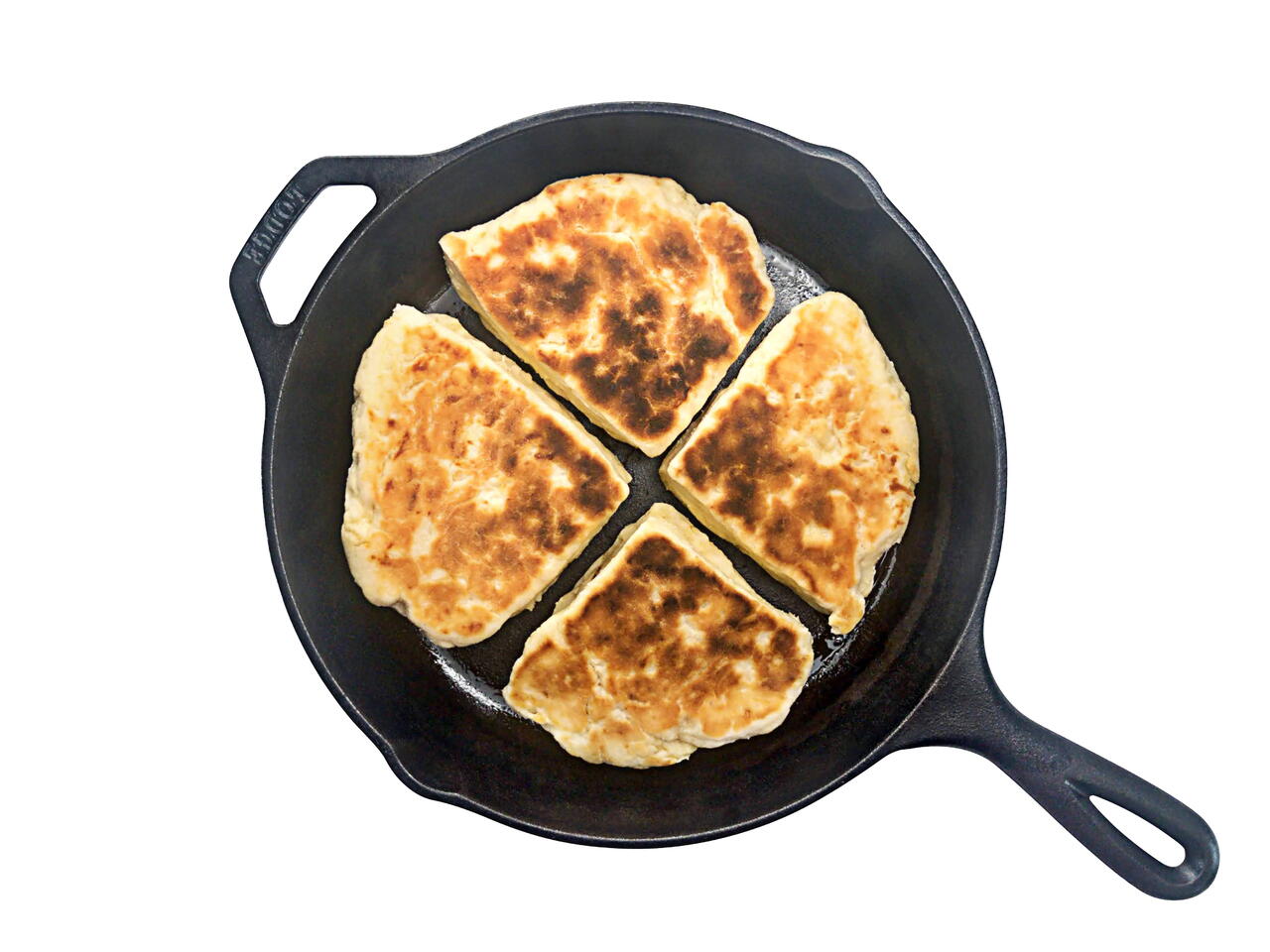 Flip the soda farls to the other side and cook for another 6-10 minutes on low. Be careful to cook the bread through to the center without burning the outside.