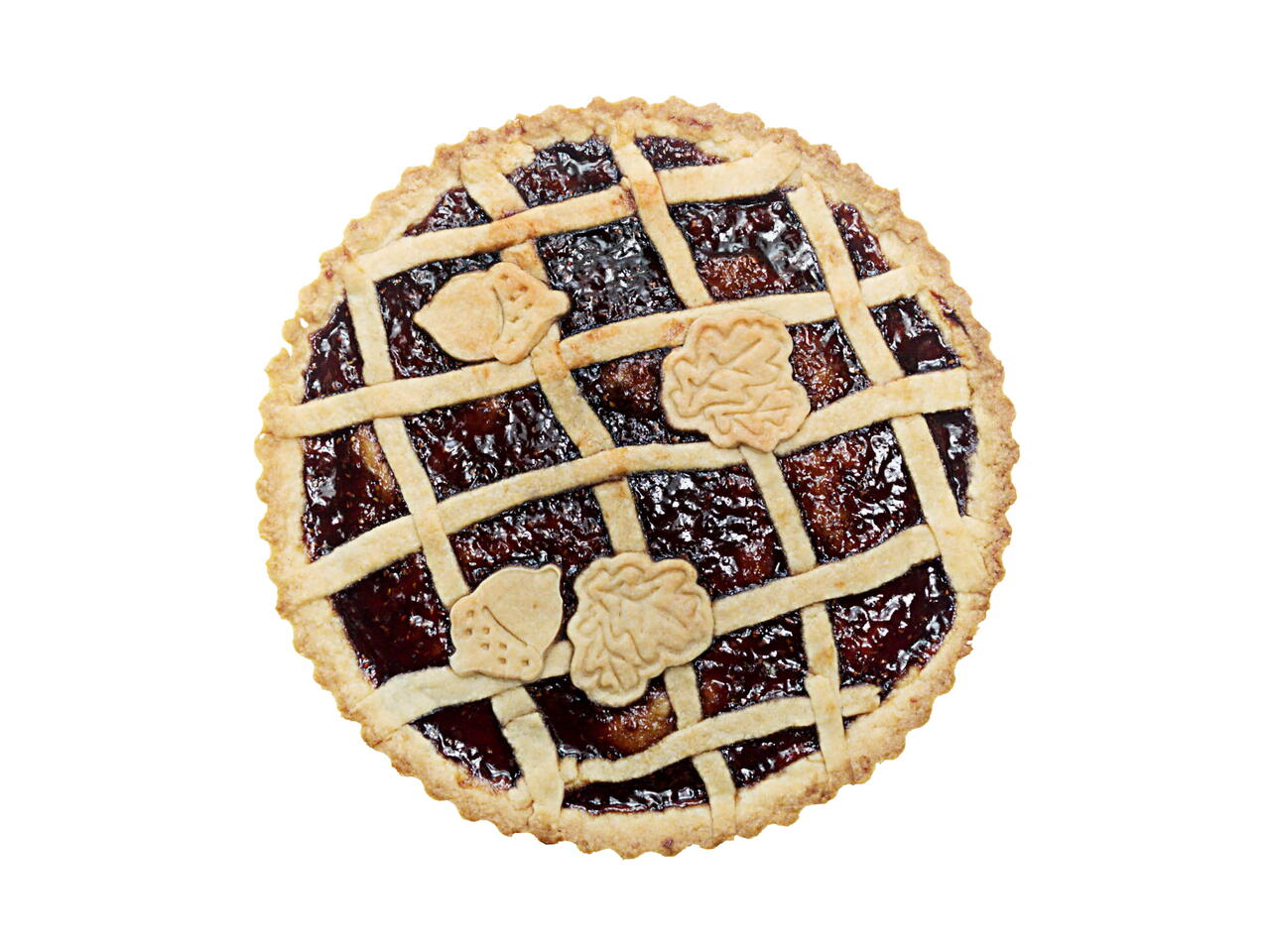 Decorate the top of the tart with the remaining dough however you like. I did a lattice with dough strips and used cookie cutter leaves