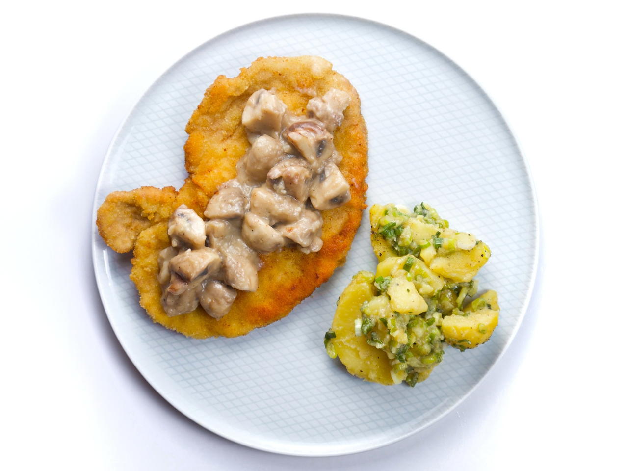 Transfer the cutlet into the bread crumbs. Press the cutlet down into the breadcrumbs to coat completely. Repeat this series with the remaining cutlets.