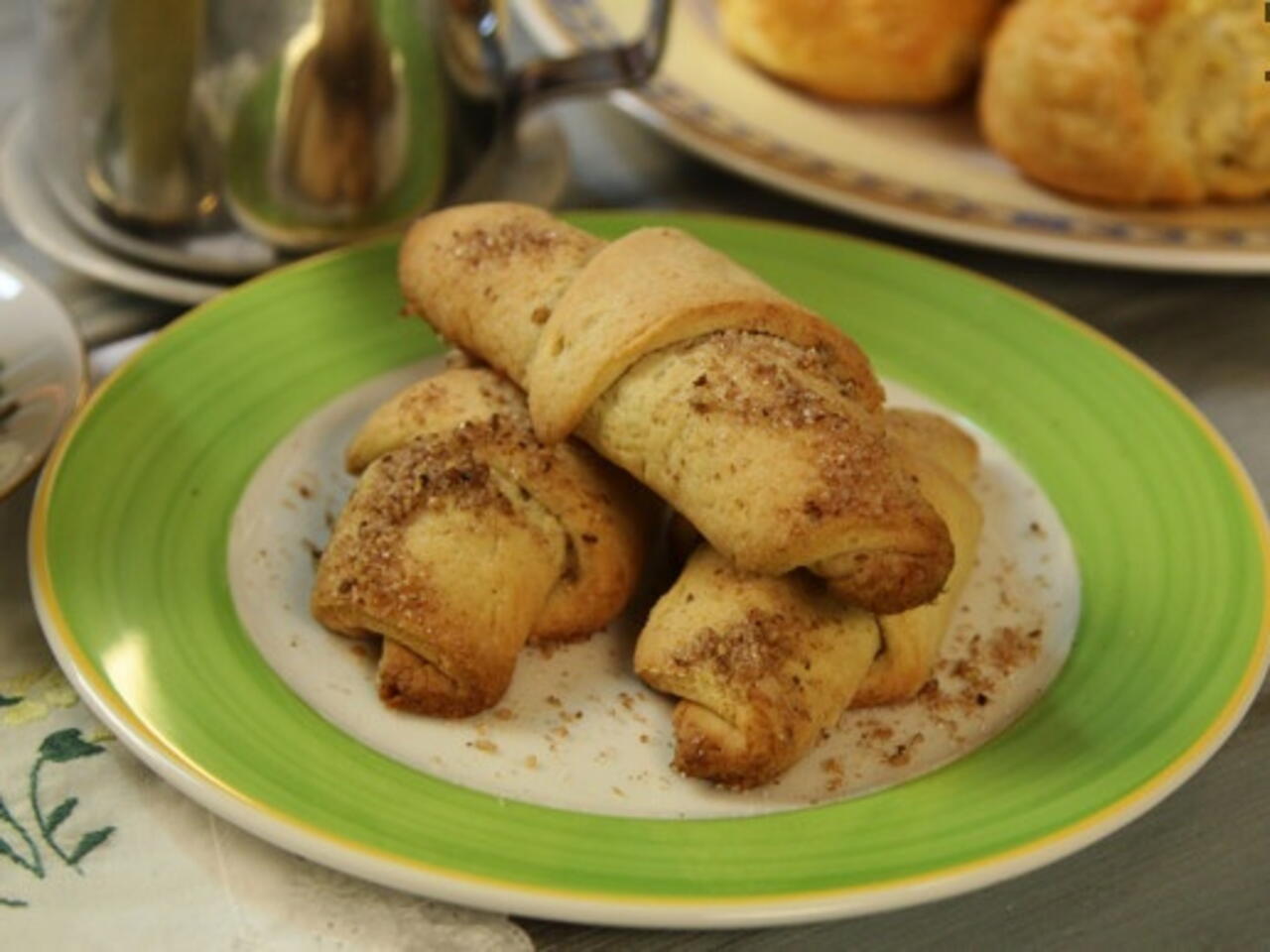 Орехите се мелят със захар и канела. Студеното тесто се разделя на две и с малко брашно се разточва на кръгли кори с размер 30 см. Всяка кора се реже на триъгълници. Всеки тиъгълник се ръси с орехи и навива от основа към върха на рулце. Рулцата се слагат в тава и пекат на 180 ℃ в предварително затоплена фурна 25 мин.