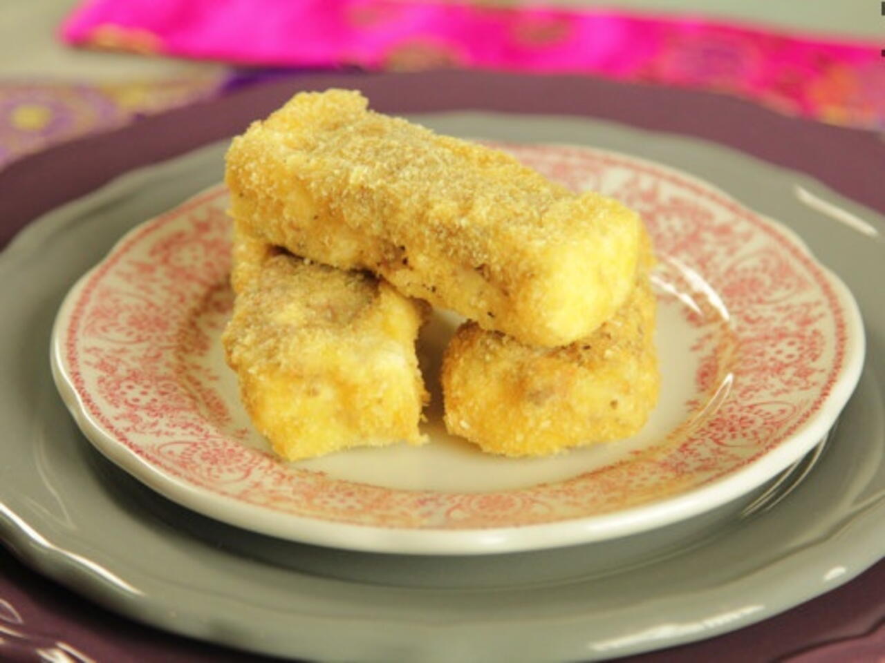 Сиренето се нарязва на 5-6 еднакви парчета. Ядките се мелят на фино и смесват със босилек и чесън. Яйцата се разбиват в купа. Всяко сирене се намокря добре с вода и овалва в ореховите ядки като внимателно се притиска. Овалва се след това в галета, разбити яйца и картофено пюре.