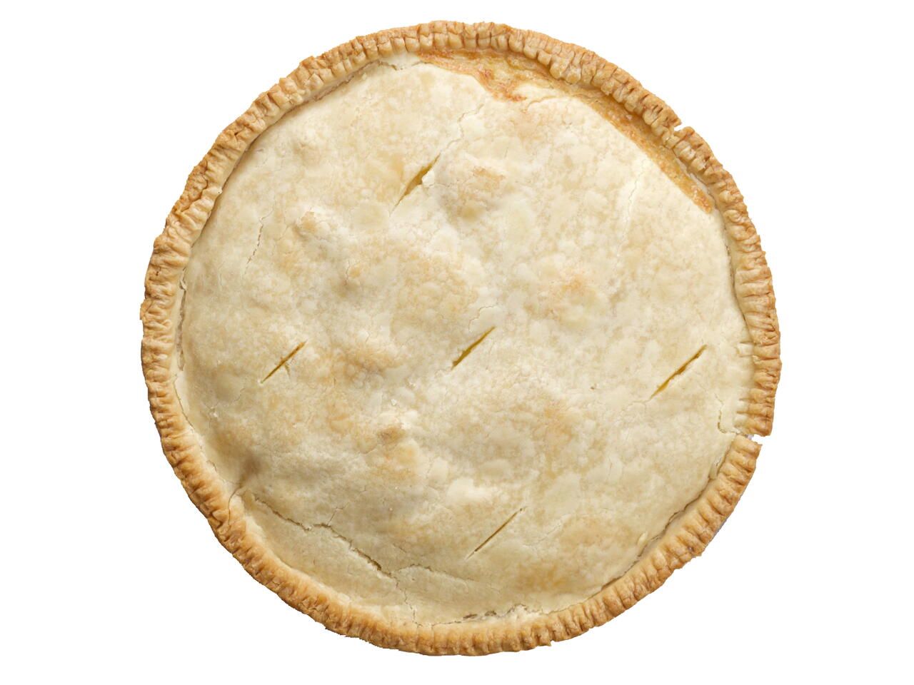 Top with the remaining round of pie dough. Pinch the top sheet against the bottom sheet at the rim of the pie dish.
