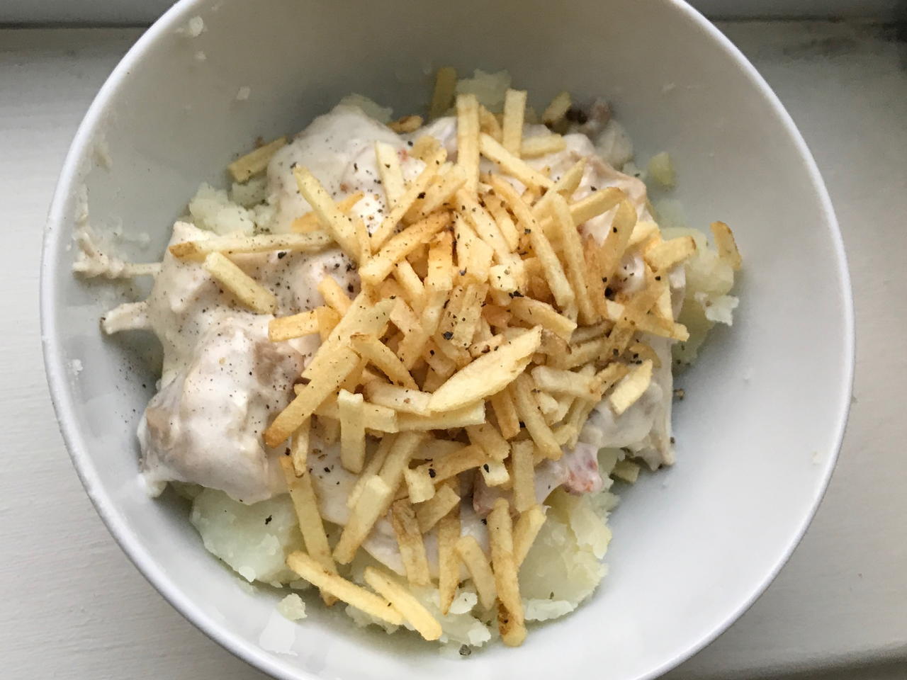 Add the Creamy chicken on top of the potatoes