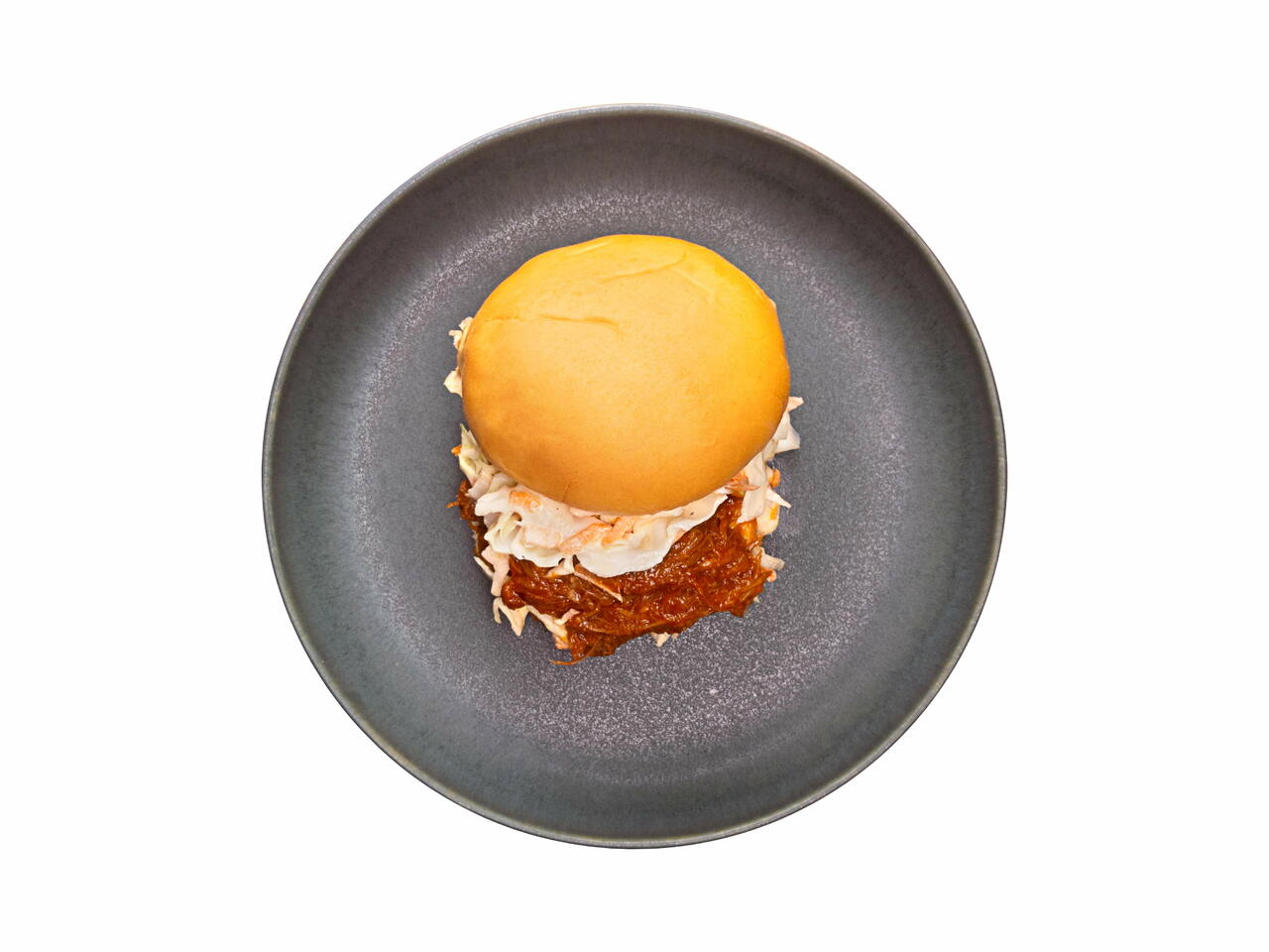 Fill the toasted buns with pulled pork and coleslaw.