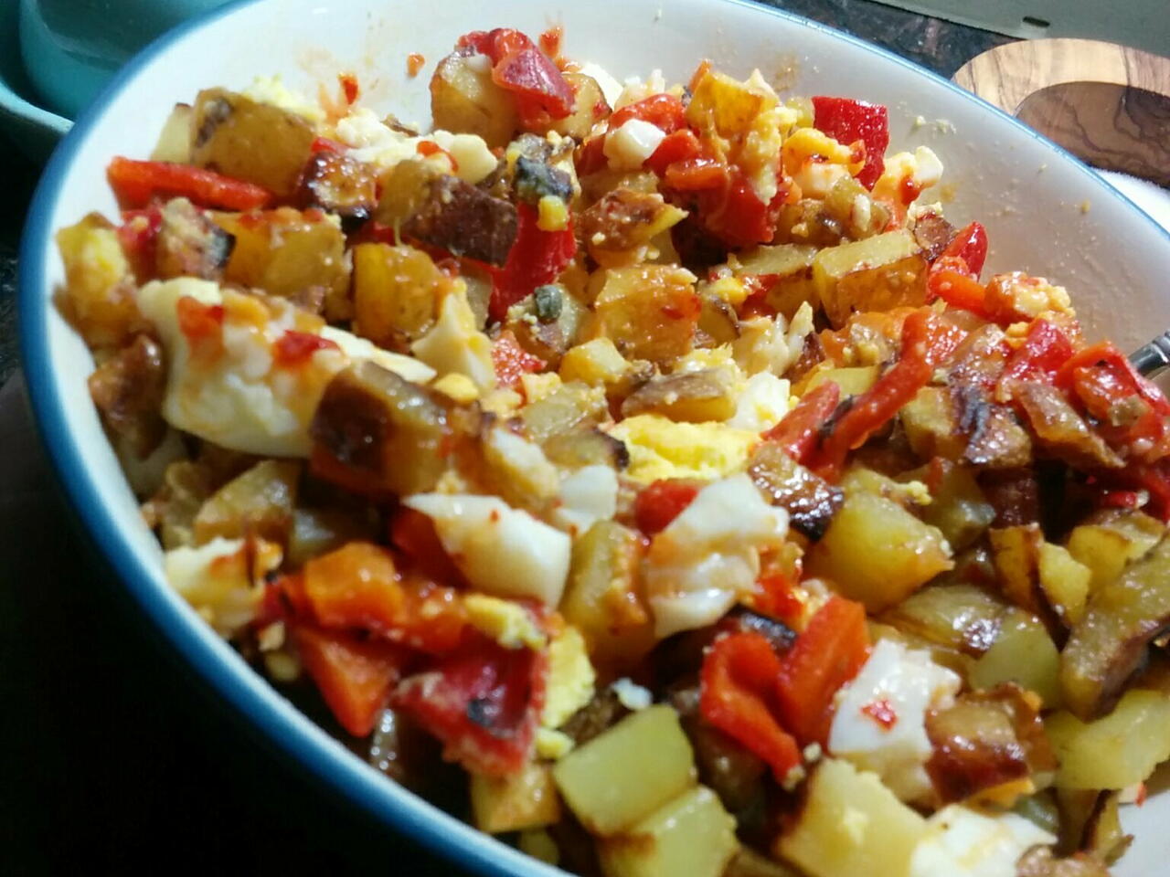 Dice potatoes and fry them on cast iron. I used olive oil and a nice medium-low temp.