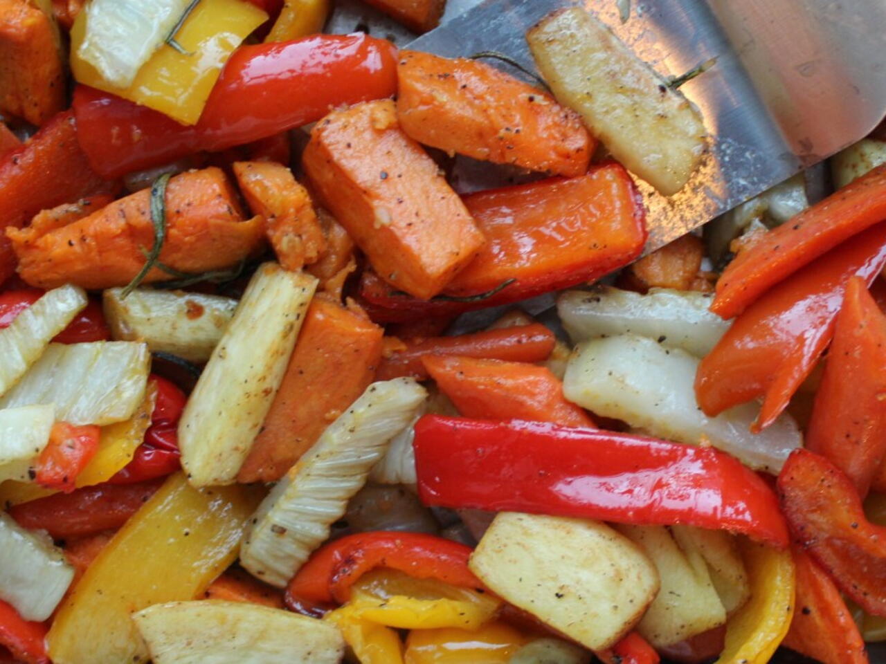 Roast for about 45 minutes, tossing vegetables halfway through, until tender.