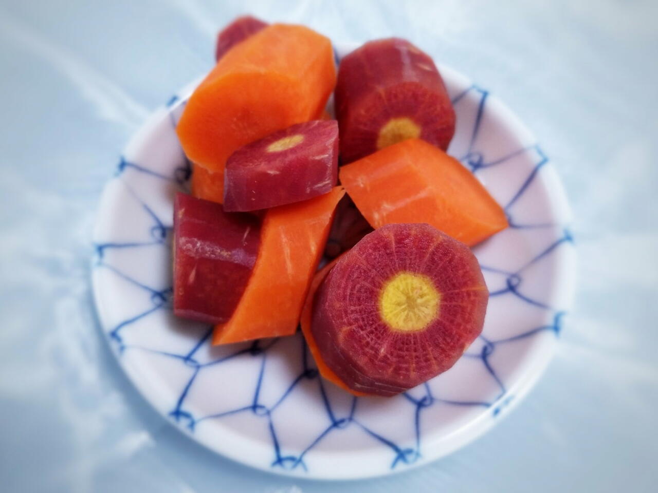 The roll cut is great for quickly chopping vegetables that have an oblong shape. See, the problem with oblong vegetables like carrots is that they are wider on one side. This means that if you slice them uniformly, the pieces will not really cook at the same rate. The haphazard nature of the roll cut yields some interesting shapes that should cook more evenly than a standard cut.