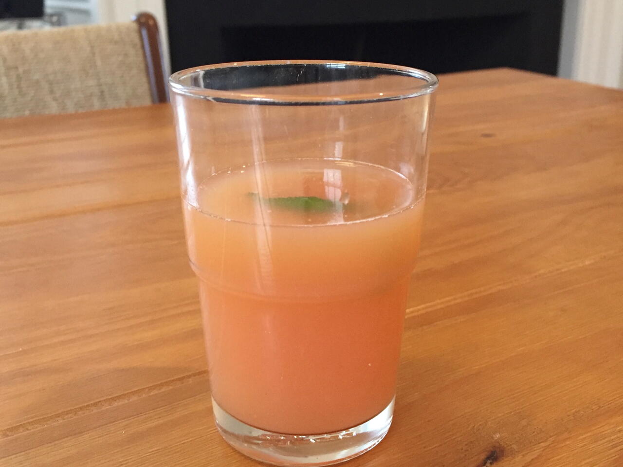Combine the grapefruit juice, 1 oz of the ginger-honey syrup, and ice in a cocktail shaker. Squeeze the lime into the shaker.