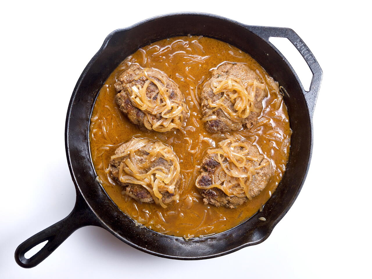 Return the steak patties to the gravy. Simmer, stirring often, until the gravy thickens to the desired consistency. Adjust seasoning if needed.