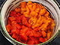 Dump in the roasted bell pepper chunks. Season with salt and pepper.