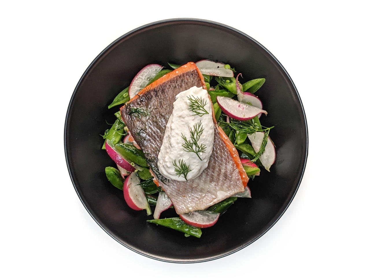 Slow Roasted Salmon with Radishes and Snap Peas