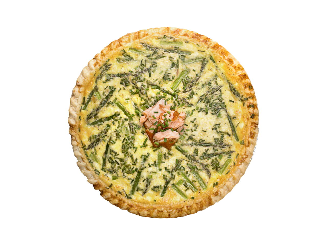 Top off the quiche with custard until the crust is full. You may have some leftover depending on the size of your crust. Careful not to fill too full. I recommend placing the quiche on a baking pan and into the oven before topping off the quiche with the custard to prevent spilling.