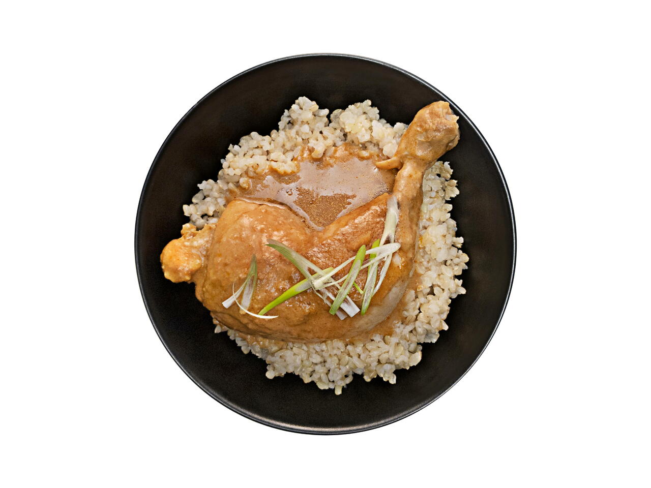 This is a rich and spicy chicken braise, very loosely based on groundnut stew, a dish of mostly African origin.