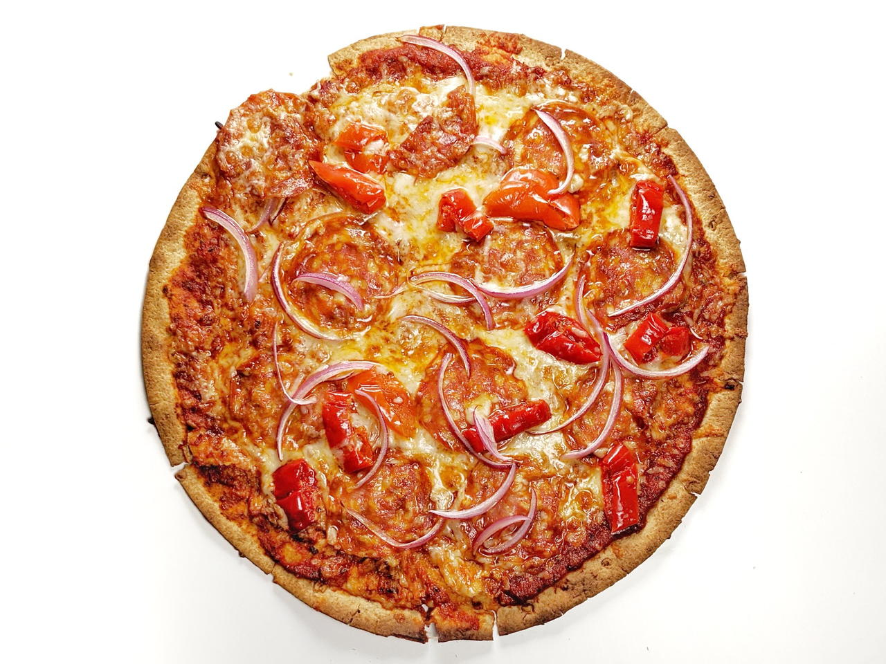 This is my absolute favorite pizza of all time! Here in the Pacific NW we have a famous brand of pickled sweet and spicy Hungarian peppers called Mama Lil's. Every pizza place in town uses them and this is my re-creation. Roasted red peppers are a great substitute if you can't get your hands on these amazing peppers.