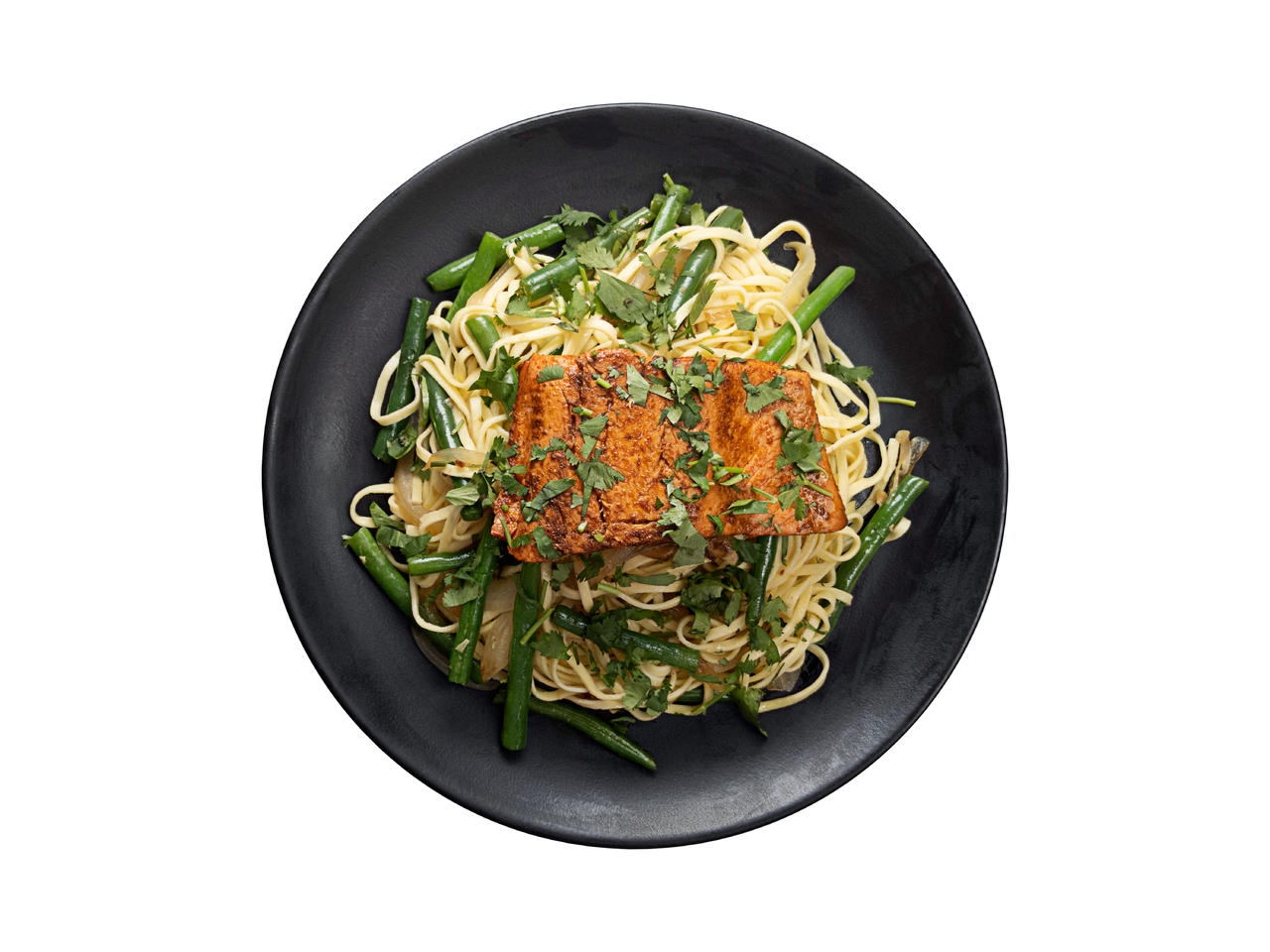 Brush the salmon with the marinade until coated, pour over any leftover and set aside while you prepare the green beans, onion, and boiling water.