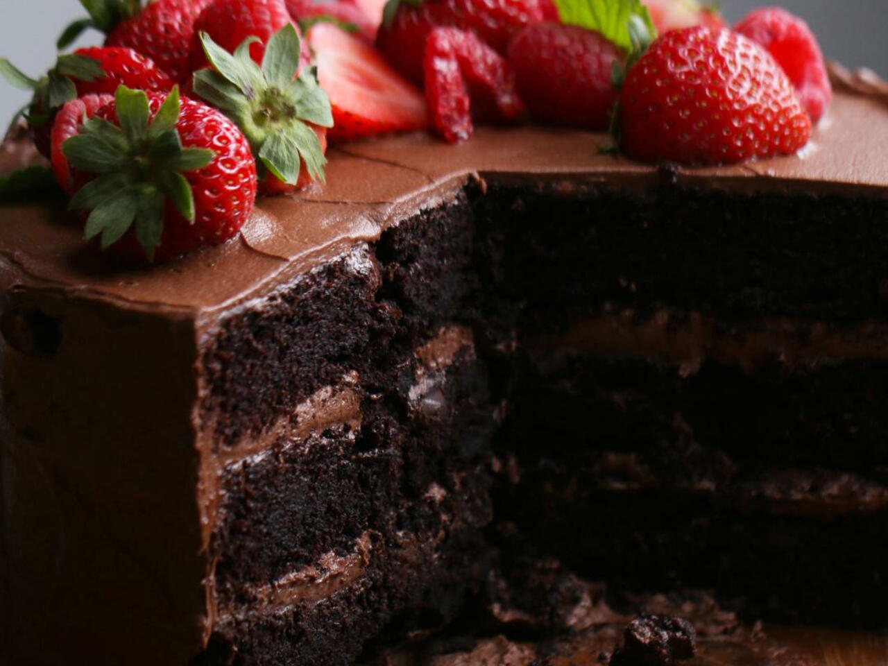 In a large bowl, sift together the flour, cocoa powder, salt, baking soda, and baking powder. Set aside.