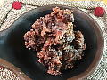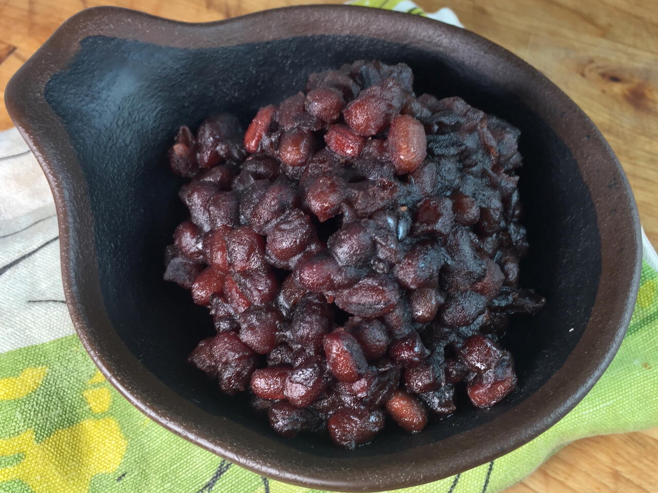 Mash roughly with a potato masher or a wooden spoon to make tsubushian (mashed red bean paste). I actually used a mason jar to mash mine.