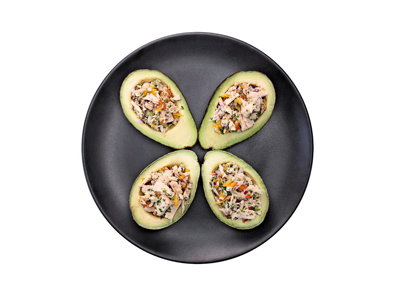 Fill the avocados with the tuna salad.