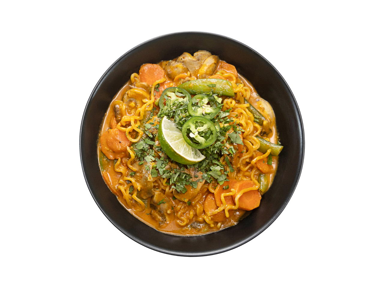 If you are needing a rich, hearty vegan meal, try this coconut milk broth filled with veggies and ramen noodles.