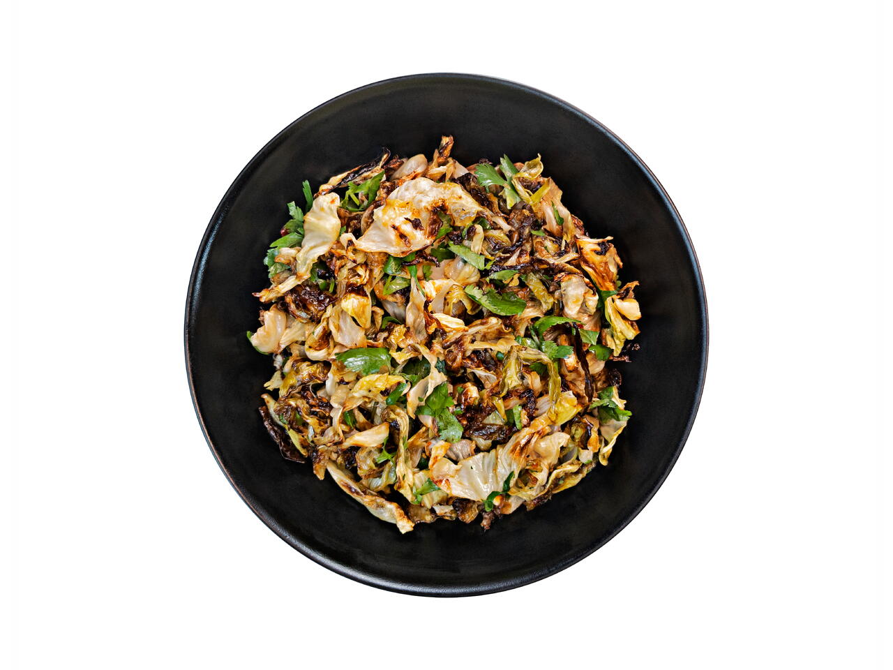 When the cabbage is crispy and browned in places and still green and tender in others, pull it from the oven.