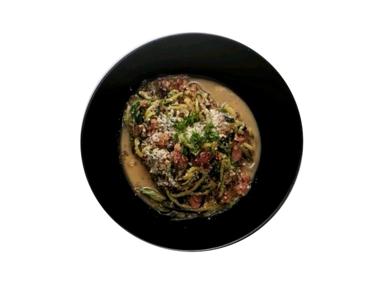 This is a fun twist on the classic carbonara switching in spiralized zucchini in for the noodles.