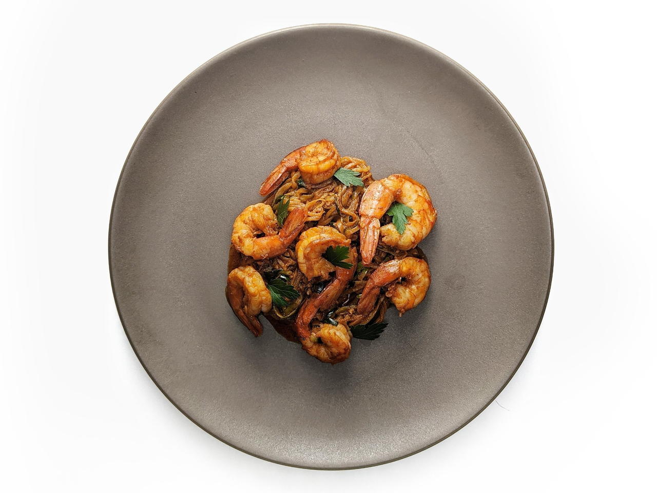 Spanish-style shrimp with zucchini noodles. Super quick. Super healthy.