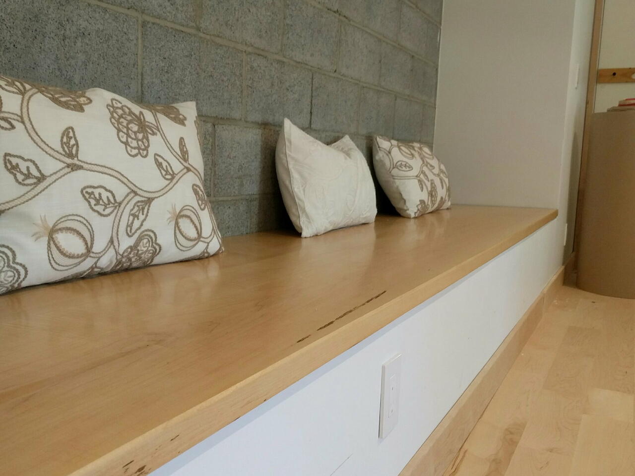We had multiple closets in our downstairs living room. We decided to remove one and create a sitting space. The idea of using wood is because we want pillows and let people do whatever they want.