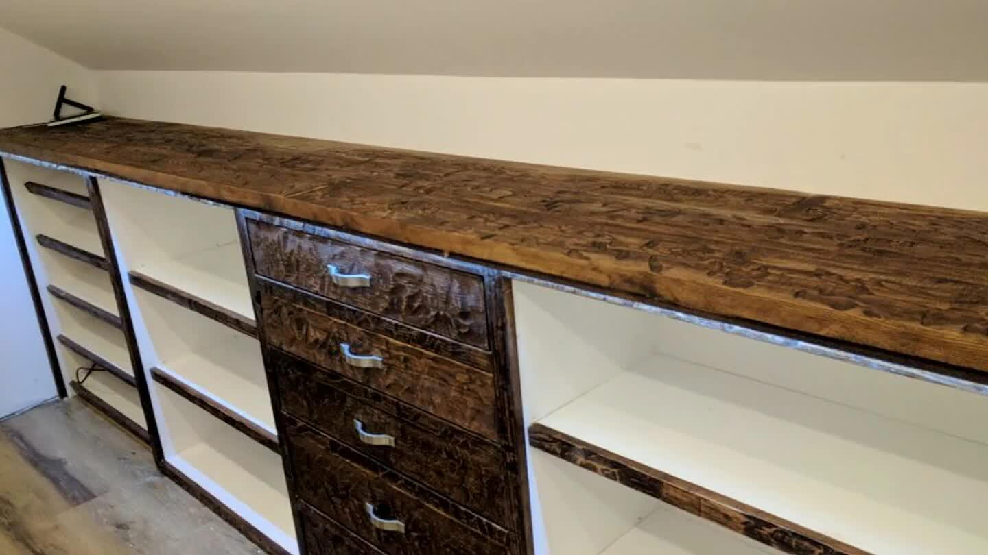 A lot of work.made of plywood and hardwood.front was age with Festool planer and grinder.fronts have been oiled.