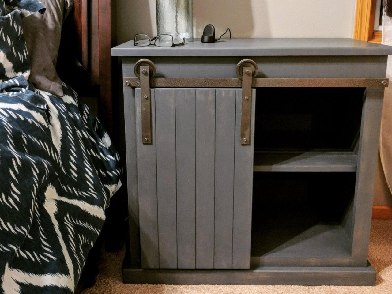 Top, doors and frame are solid birch. Sides, back and shelf are plywood. Rails we're built not bought!