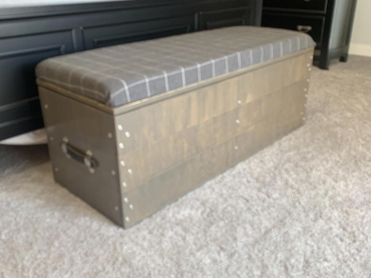 I used a template from Rockler (storage ottoman) for inspiration. I made it 48” wide and 18” tall (including foam seat) to meet my needs as a bedside chest with seat. Plenty of extra storage and convenient seat for putting on and taking off shoes.