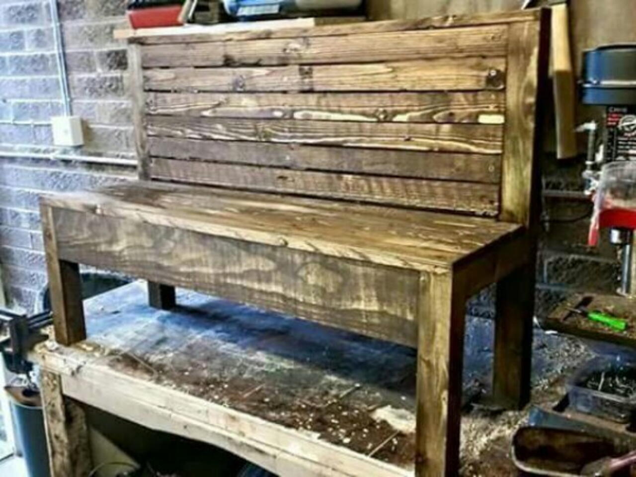 I made it 1ft high for the seat 2 ft high for back and 3 ft wide. I cut all stock to length and width and glued and screwed using my kregg jig a good sanding then stain great build