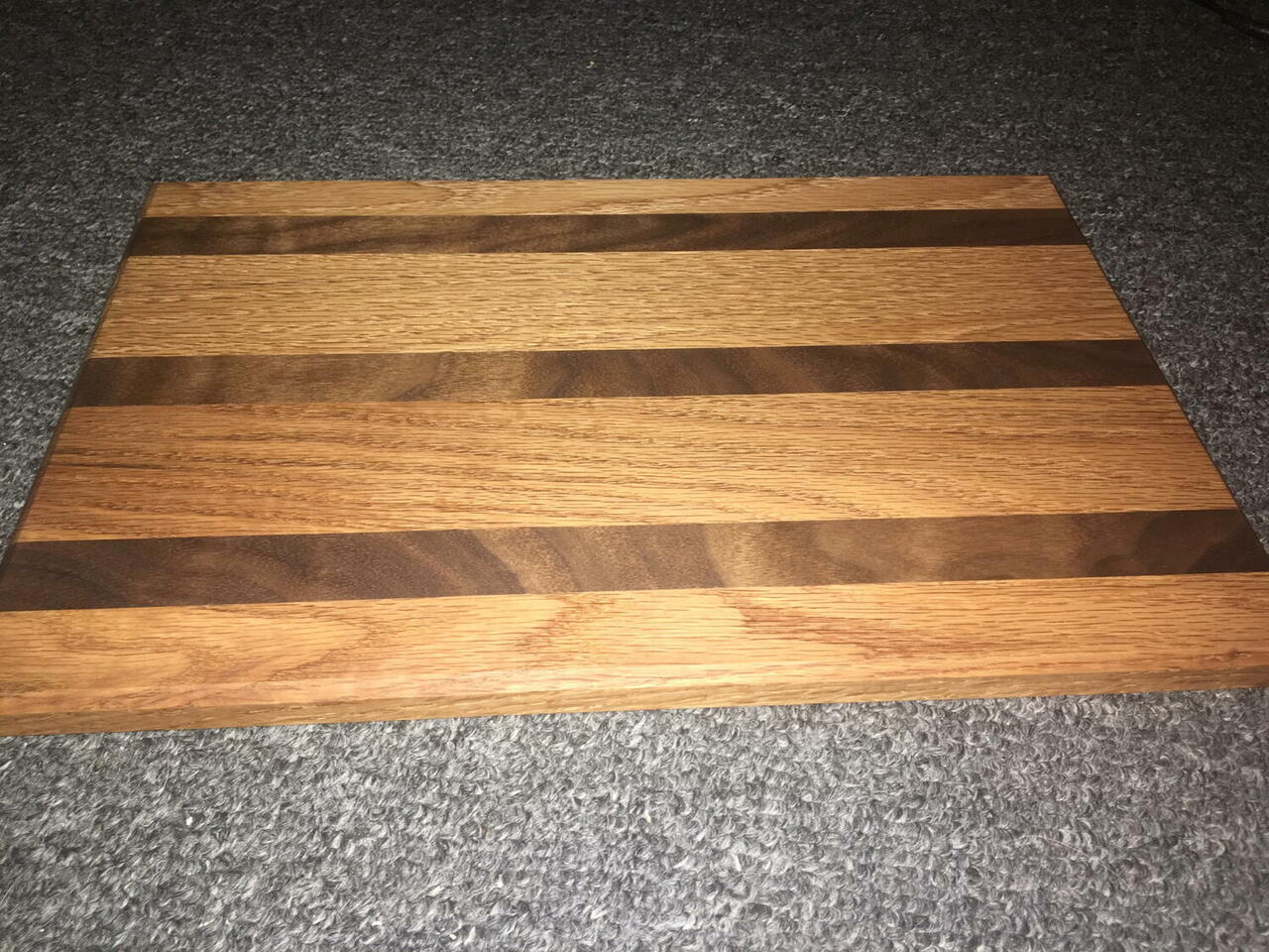 you can use any wood of your choice. i chose walnut and red oak. cut out all your pieces, can choose length of your choice. widths i used were 2 30mm pieces of red oak and 2 pieces at 60mm also of red oak. the last 3 pieces of walnut are 25mm