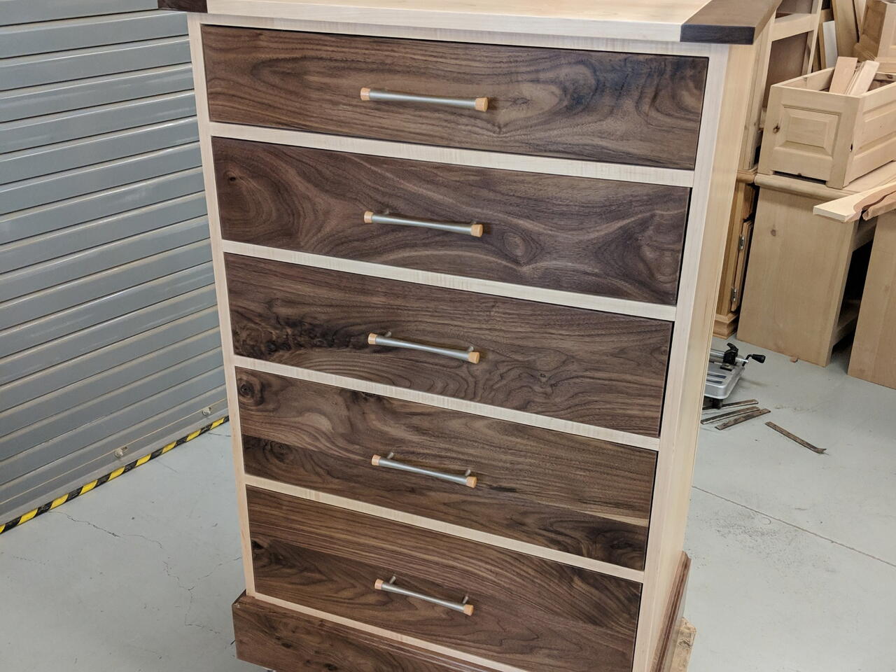 Cut and glue up the drawer fronts to fit with 1/16th inch on every side
