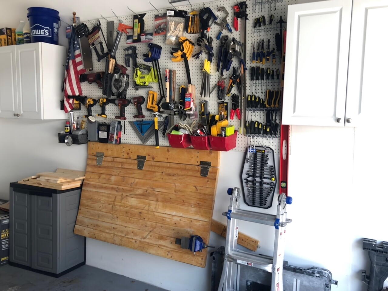 line up up 2x4 for doweling, drill in to studs, mount 2x6 and install hinges, drill hinges in to assembled table, install hinges and longer 2x4 with rubber feet on the base of the table