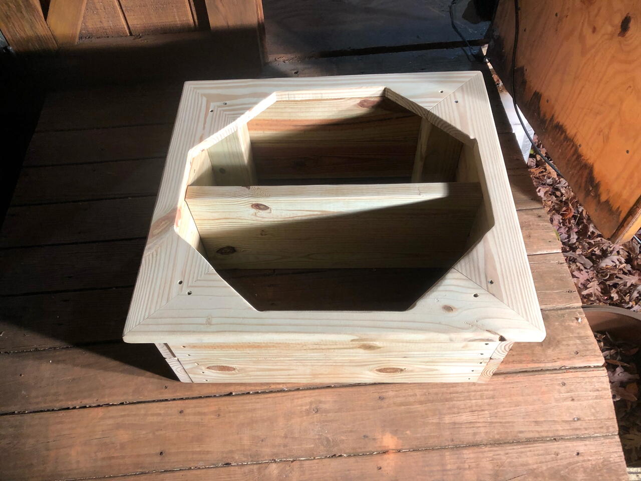 Cut your decking board into 10 2ft pieces. The cut your 4x4 into 4 1ft pieces. Then take your 4x4 and and lay it flat then lay your decking board on it. Make sure that the ends of the board and 4x4 are flushed then screw it in. Do the same with all 4 sides. After doing all 4sides. You should have a whole box. Then take another decking board and put it in the middle of the box for a divider. (The divider is optional). Then to make boxer cut decking board into any style with bandsaw or jigsaw.