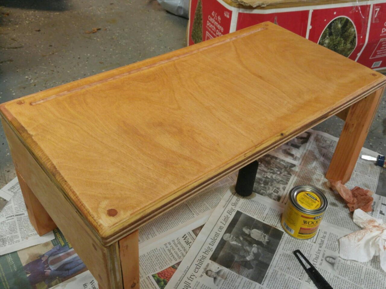 Cut the now 1" × 1" legs so that the plywood pieces can sit flush