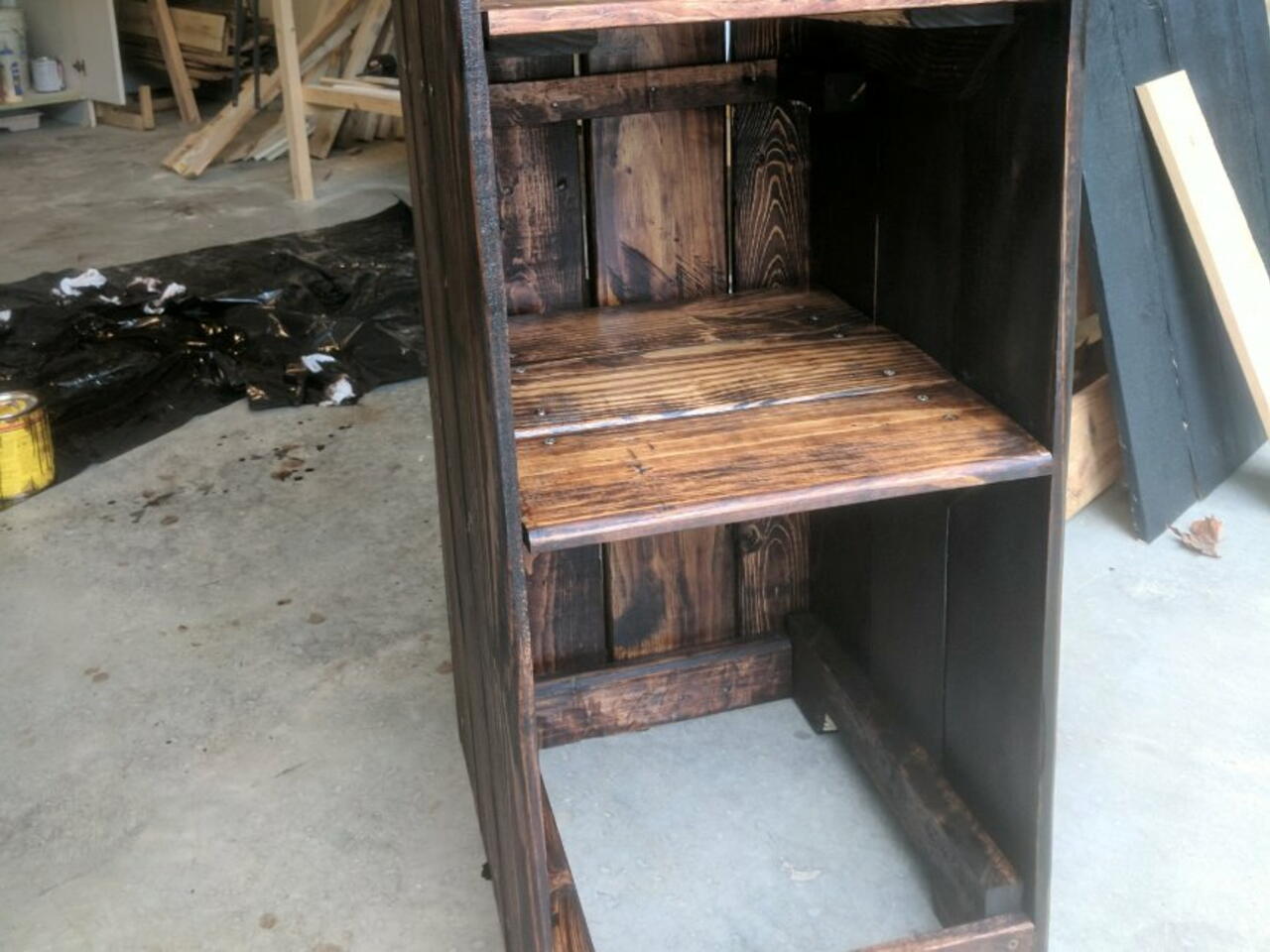 This was a project ment for the bathroom bookshelf but dummy me got dimensiones wrong. So now it's either nightstand or in table of some sort. I sanded all boards multiple times throughout the project. Enjoy.