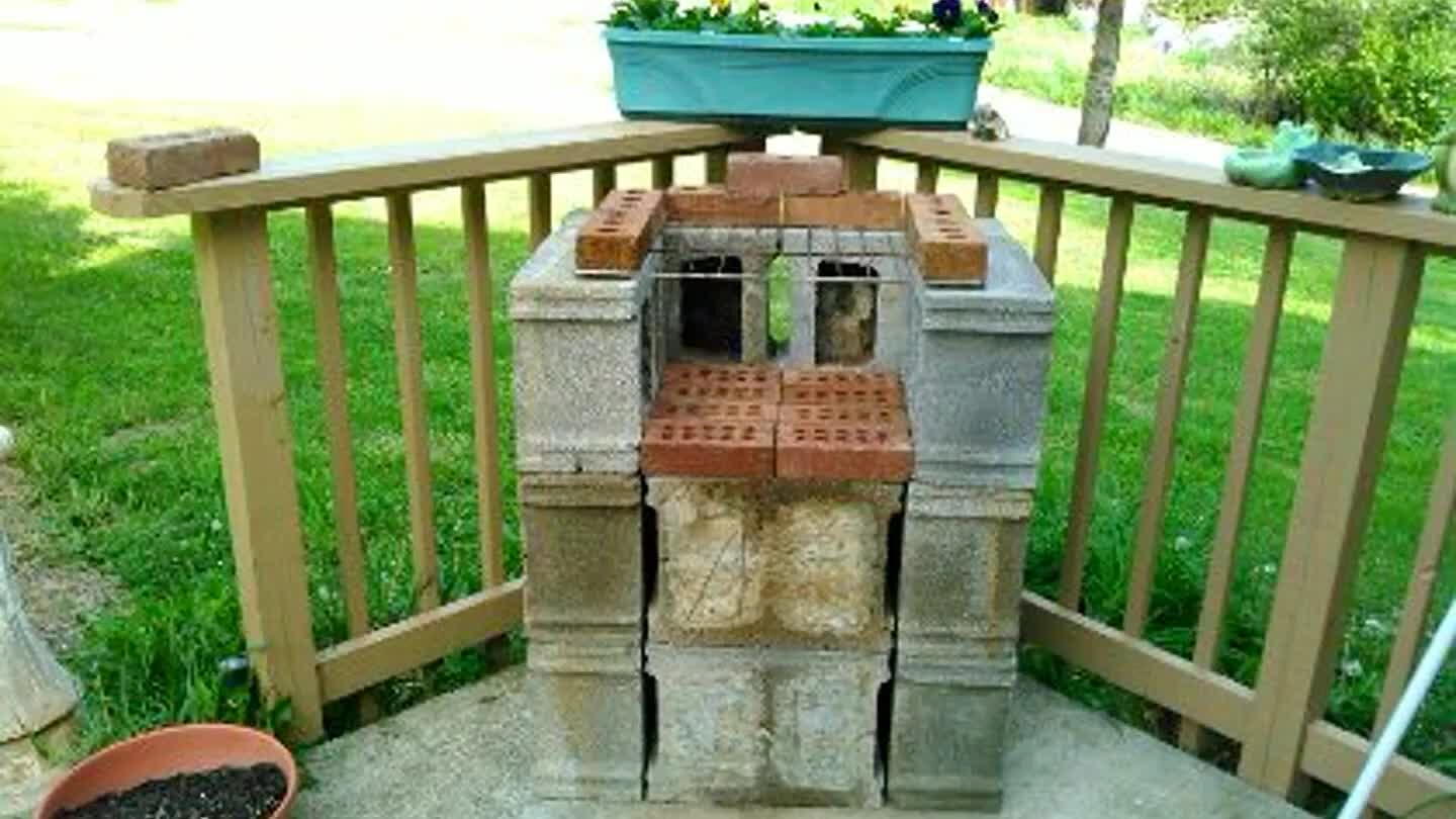 Made from salvaged wood and cinder blocks.