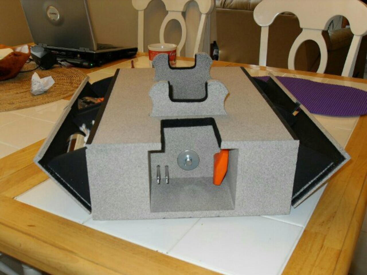 1/2" and 1/4" plywood with piano hinges sprayed with texture paint